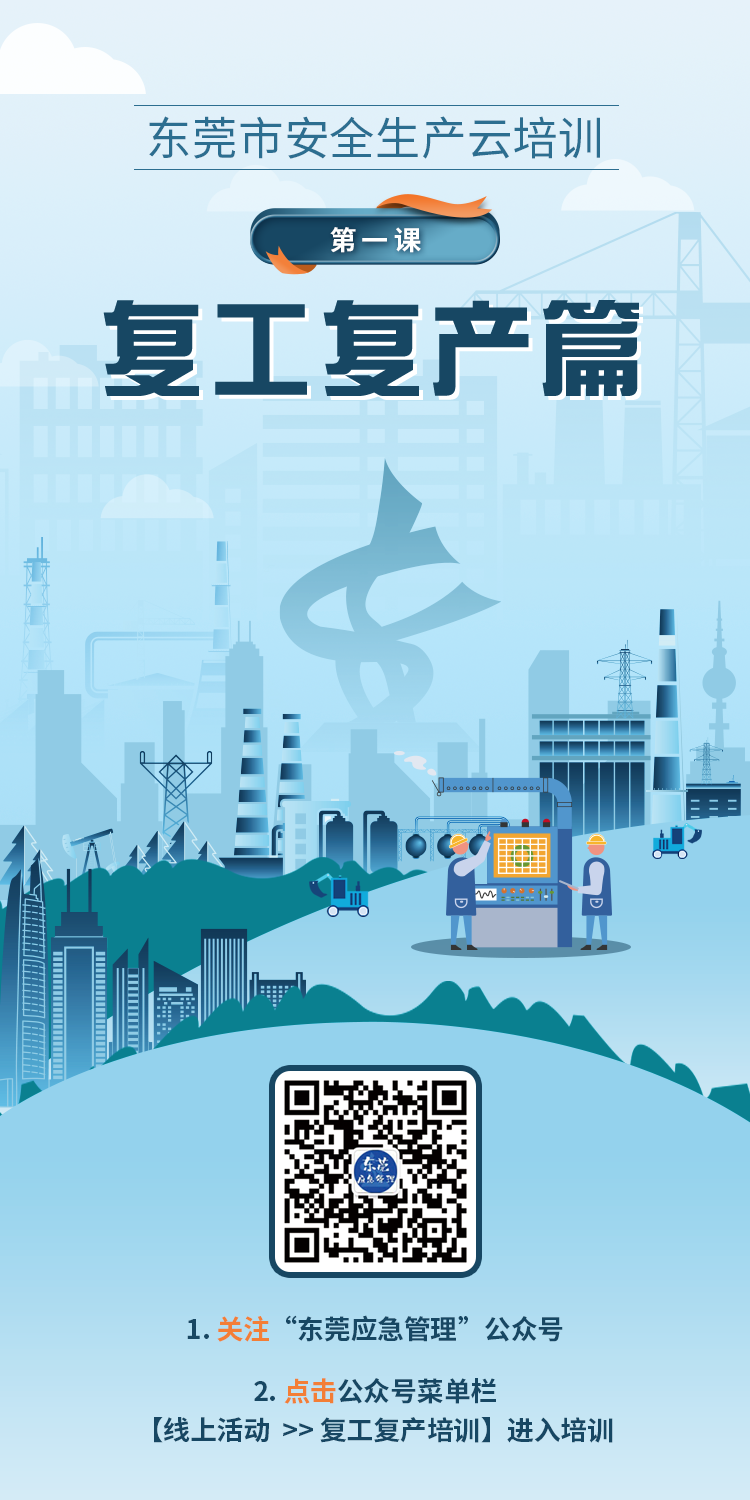 春節后復產復工階段,屬于各類生產安全事故易發高發時期,為全面貫徹落實上級關于做好當前安全生產工作的系列決策部署及春節假期后安全復工復產的工作會議精神,切實抓好節后復工復產各項安全防范工作,堅決防范和遏制較大及以上生產安全事故發生,根據《廣東省應急管理廳關于印發<廣東省應急管理廳春節后復工復產安全生產線上線下指導服務工作方案>的通知》 (粵應急辦 (2021) 11 號)、《關于做好節后復工復產安全防范工作的通知》(粵安辦 (2021) 21 號)等相關要求,市應急管理局決定組織開展安全生產云培訓“第一課”——節后復工復產在線培訓活動。